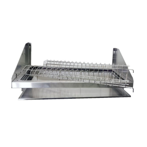Полка для сушки посуды изготовлена из нержавеющей стали, комплектуется сетками из нержавеющей стали для сушки посуды (тарелки/стаканы); каркас полки – разборный, толщиной 0,8 мм. Двойные безопасные гибы по периметру рамки под сетку, вальцовка боковых стенок. Предусмотрены отверстия для крепления полки к стене, метизы для сборки входят в комплект. Полка имеет компактную индивидуальную упаковку из гофрокартона и термоусадочной пленки.