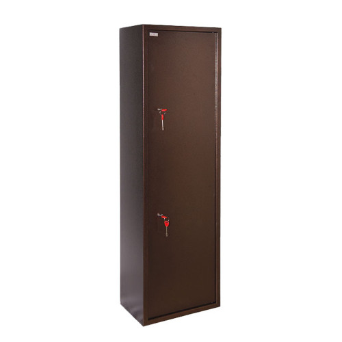 Корпус шкафа изготовлен из стального листа толщиной 1,5 мм, полотно двери — из листа толщиной 2 мм. Полотно двери изнутри усилено панелью коробчатого сечения из стального листа толщиной 0,8 мм, на которой располагаются дополнительные элементы, такие как: шомполодержатель, скоба, масленка. В шкафу установлено два 8-ми сувальдных замка фирмы «ПРО САМ» (Россия) с классом устойчивости 2 по ГОСТ 5089-2003. Петли – внутренние. Покрытие шкафа – порошковое полимерное, цвет в стандартном исполнении — «Медный антик». Шкаф не подлежит обязательному декларированию или сертификации.