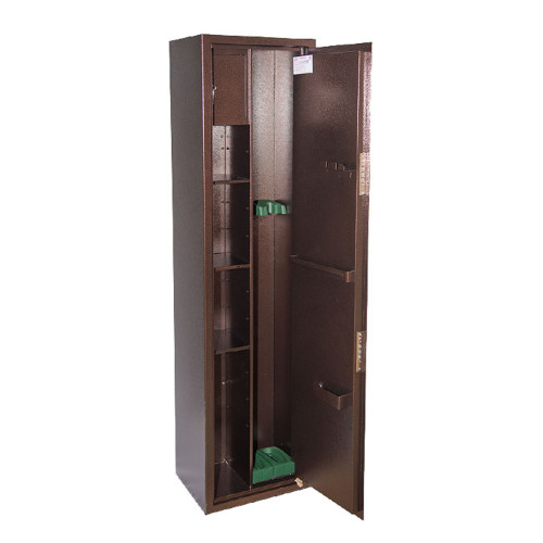 Шкаф предназначен для хранения и ограничения несанкционированного доступа к гражданскому и служебному оружию, боеприпасам и принадлежностям. Шкафы представляют собой цельносварную металлическую конструкцию, соединение элементов которой выполнены методом сварки сплошным швом по контуру прилегания элементов. Глубина шкафа, расстояние между полками, угол открывания двери подобраны для рационального размещения оружия, боеприпасов и других принадлежностей.
