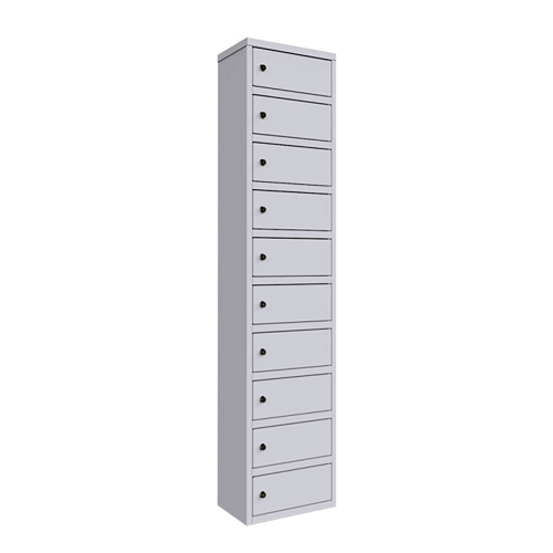 Шкаф модульный абонентский предназначен для хранения ценных вещей и корреспонденции в отделениях банков, почтовых отделениях, в клиниках, аптеках, больницах, школах, детских садах, на крупных предприятиях и в других учреждениях. Модель имеет 10 индивидуальных ячеек. Каждая ячейка запирается на почтовый ключевой замок.